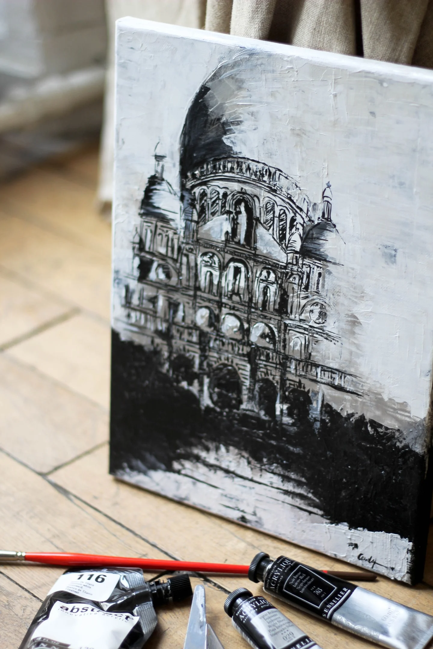 I started painting this because I didn't know what to prepare as a farewell gift for a friend who was leaving France. She used to live around the Montmartre area, and love it so much. I thought that maybe I could make a little tableau replica of the frenchy vibes that she perhaps love.